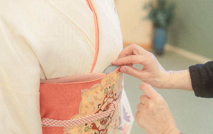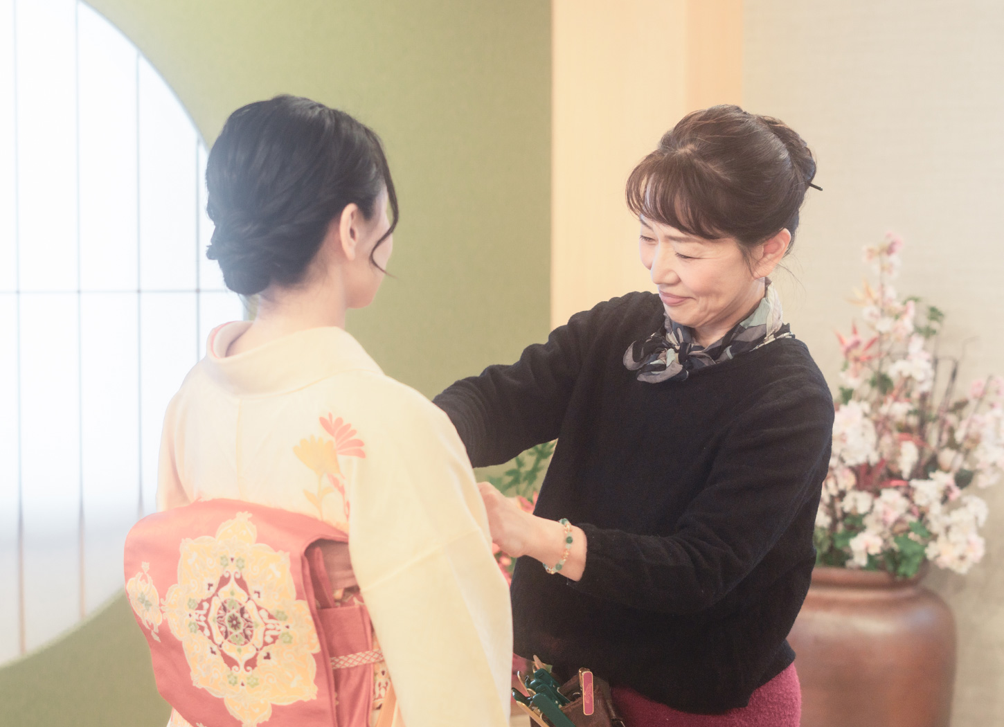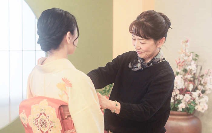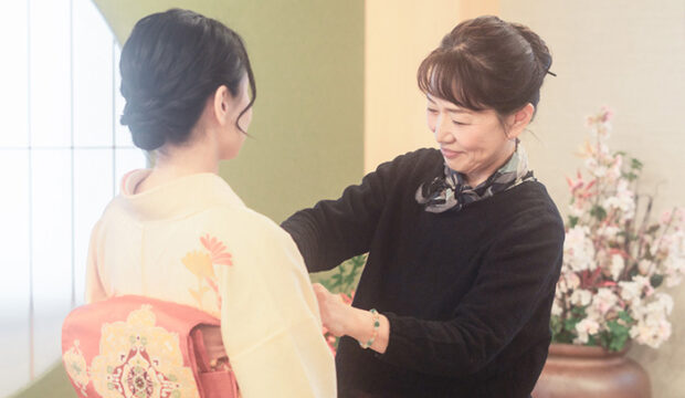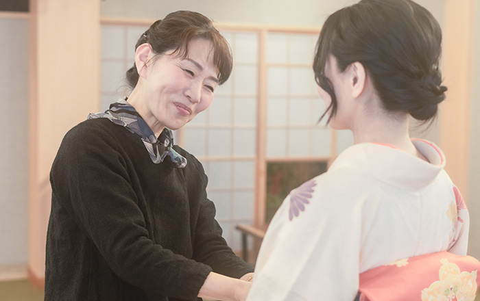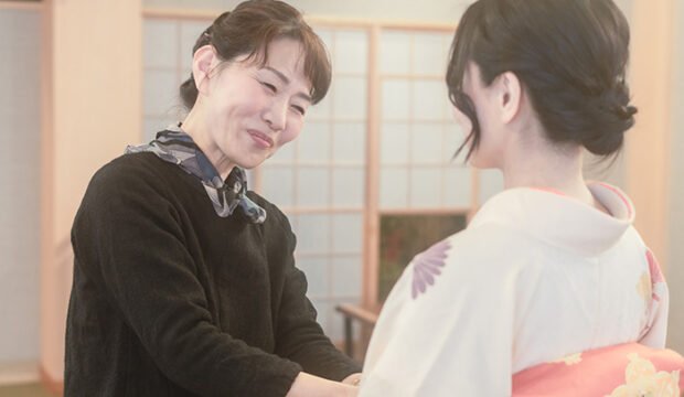 『美しい血流着付け®』は、お客様の健康を第一に考え、大人の女性が求める心地よさと美しさを追求した着付けです。